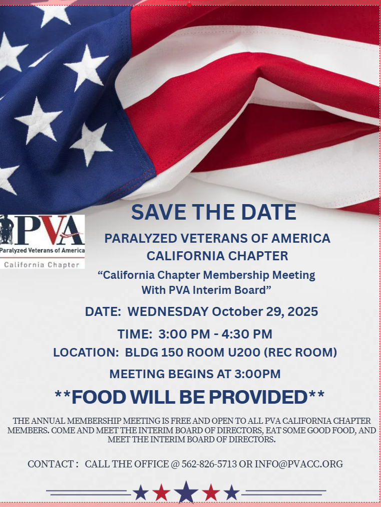 Paralyzed Veterans of America California is one of the first 5 original chapters of PVA. Our chapter of approximately 700 members covers roughly 40 states throughout our nation. We are based in Long Beach CA, and serve the special needs of our members – veterans of the armed forces who have experienced spinal cord injury or dysfunction. The California Chapter works towards the mission by advocating for the best healthcare and providing opportunities to improve quality of life.